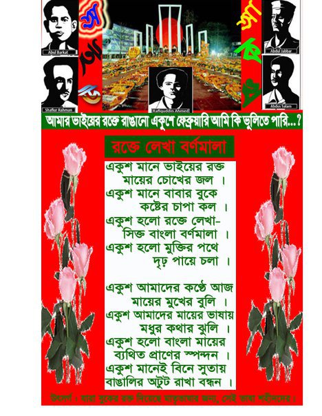 The Dawn of New Creation(Aaj Srishti Shukher Ullashey)Today at the Nativity of New Creation, A thrill of joy runs riot in me, My face is aglow, my eyes are radiant, My blood boils and bubbles and dances in ecstasy Today at the Baptism of New Life! Today in the imprisoned well of my heart – A deluge arises and the flood-tide violently breaks through the barriers. There comes smile, there are tears, Liberty appears, fetters follow, I learn to speak, today, my bosom is split up, there comes the joy of my bitter sorrow, Lo! There comes the sorrow of a forlorn heart – Today at the Baptism of a New world! There appear the deserted, there wail the dejected, And heart-rending lamentations beggar description, The ocean is swelling, the sky trembling, the wind blowing, Vishnu's discus piercing the firmament, the trident of Shiva being hurled. Behold! The comet and the meteor Out to subvert the Creation: At this, in my breast are blossoming now the flowers of million gardens, Ay, at the prospect of a Millennium! Translated by Abdul Hakim Srishti Shukher Ullashey - RAP Poem "Rabi Hara"by Kazi Nazrul Islam's own voice, the day rabindranath tagore died
