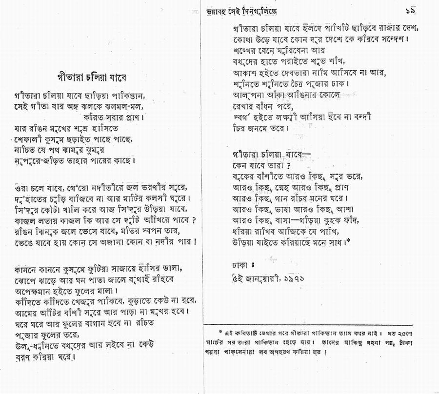 Jasim Uddin was the champion for the Bangladesh Freedom Movement taking the risk of publishing and distributing the Poems on War of Independence - about 17 poems all over the world, which created sympathy for liberation. The poems are (in bengali):