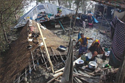 Visits to some chars, about 100 kilometres off the district headquarters, showed thousands of villagers were struggling after losing their livelihood and their homesteads. People of Anjuhat at Charfesson, Char Leolin, Char Sikdar, Char Motahar and Char Manohar — all in the south of the district or in the Bay of Bengal and difficult to reach — came in groups to tell their miseries after the cyclone.