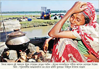 Meanwhile, the administration is providing purified water received as US relief at Maron Char. But fishermen hardly take this water following a rumour that it causes diarrhoea. At Meher Alir Char Thursday morning, it was found that hundreds of fishermen had already gathered around the eight acre-pond to collect water.