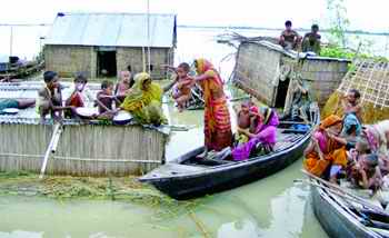 Many displaced people have taken shelter on embankments, while others have moved onto rooftops of their houses. Residents are using small boats to move around. The deluge is feared to cause huge losses to the agriculture and bring water-born diseases in its wake.