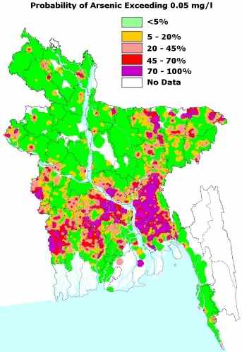 This recent transition from surface water to groundwater has significantly reduced deaths from waterborne pathogens; however, new evidence suggests disease and death from arsenic (As) and other toxic elements in groundwater are affecting large areas of Bangladesh.