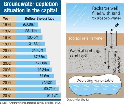 TI Global Corruption Report 2008 argues that the crisis of water is a crisis of water governance, with corruption as one of the root causes. According to the report, the need to adapt to climate change made the water sector more vulnerable to corruption. "In developing countries, corruption is estimated to raise prices for connecting a household to a water network by as much as 30 percent. This inflates the overall costs for achieving the MDGs for water and sanitation by ore than $48 billion," the report said(Independent, June 28, 2008).2. Groundwater Resource of Bangladesh