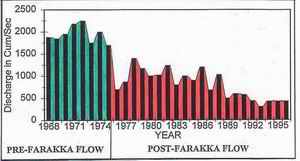 - After the construction of Farakha barrage and during dry period (Dec-April) ground water table in Bangladesh drop to such extent that surface water bodies disappear as they drain into the falling ground water table.