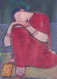 Decorative Folk Art as seen in kanthan is the best proof of the integration of inherited aesthetics in the hand of the woman folk artist. The result, a thrilling extravaganza of folk symbols, stiched into the vibrant surface of embroidered wraps and spread by women of village communities, irrespective of their religious beliefs.2005